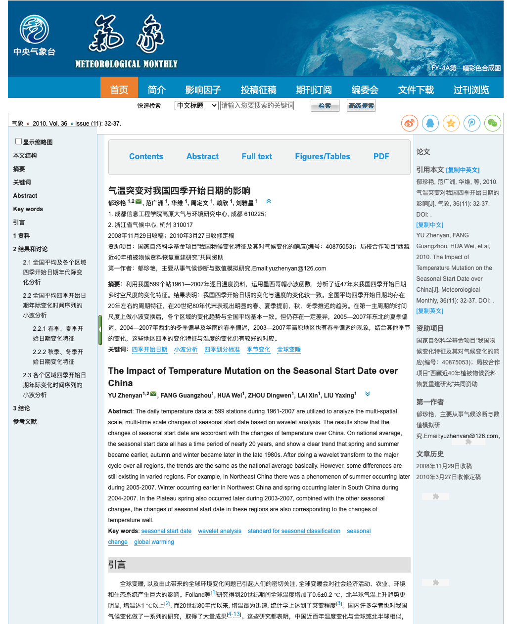 在对秋季长短的报道中,多家媒体引用了一篇十多年前的论文《气温突变对我国四季开始日期的影响》。这篇论文由成都信息工程学院高原大气与环境研究中心、浙江省气候中心的六位研究人员共同完成,于2010年发布于期刊《气象》上。